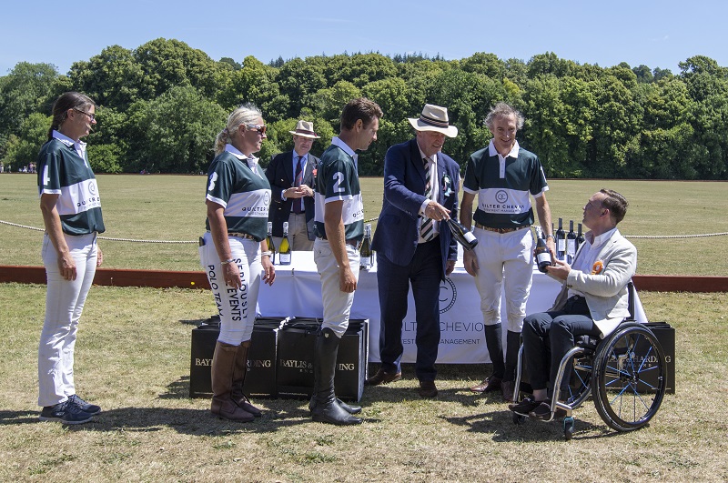 After a pandemic gap since 2019, INSPIRE’s charity Polo took place on Saturday 9th July at Tedworth Park Polo Club. Main sponsors Quilter Cheviot fielded one team, captained by Zanna Stanning beaten by 5 goals to Nil by the Baylis & Harding Jockeys, captained by Piers Fletcher. In the fast and furious HENCHMAN Two Furlong Dash (2FD) professional jockey Oisin Murphy romped home on ‘Juicy’ beating Page Fuller on ‘Tayto’ and Brian Toomey on ‘Soft Love’ and more importantly raising over £1100 for INSPIRE!