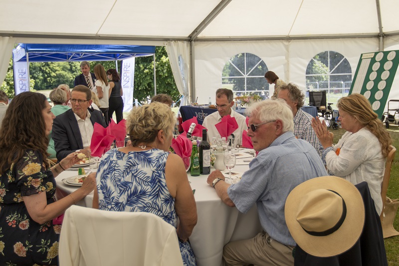 In all, 120 players, guests, patrons, trustees and scientists enjoyed INSPIRE hospitality, a sumptuous lunch prepared by Emma Harrison, MD of Complete Catering, excellent wines generously provided by Sovereign Wines of Tavistock in a lovely marquee supplied by Andy George of Occasions Marquees.