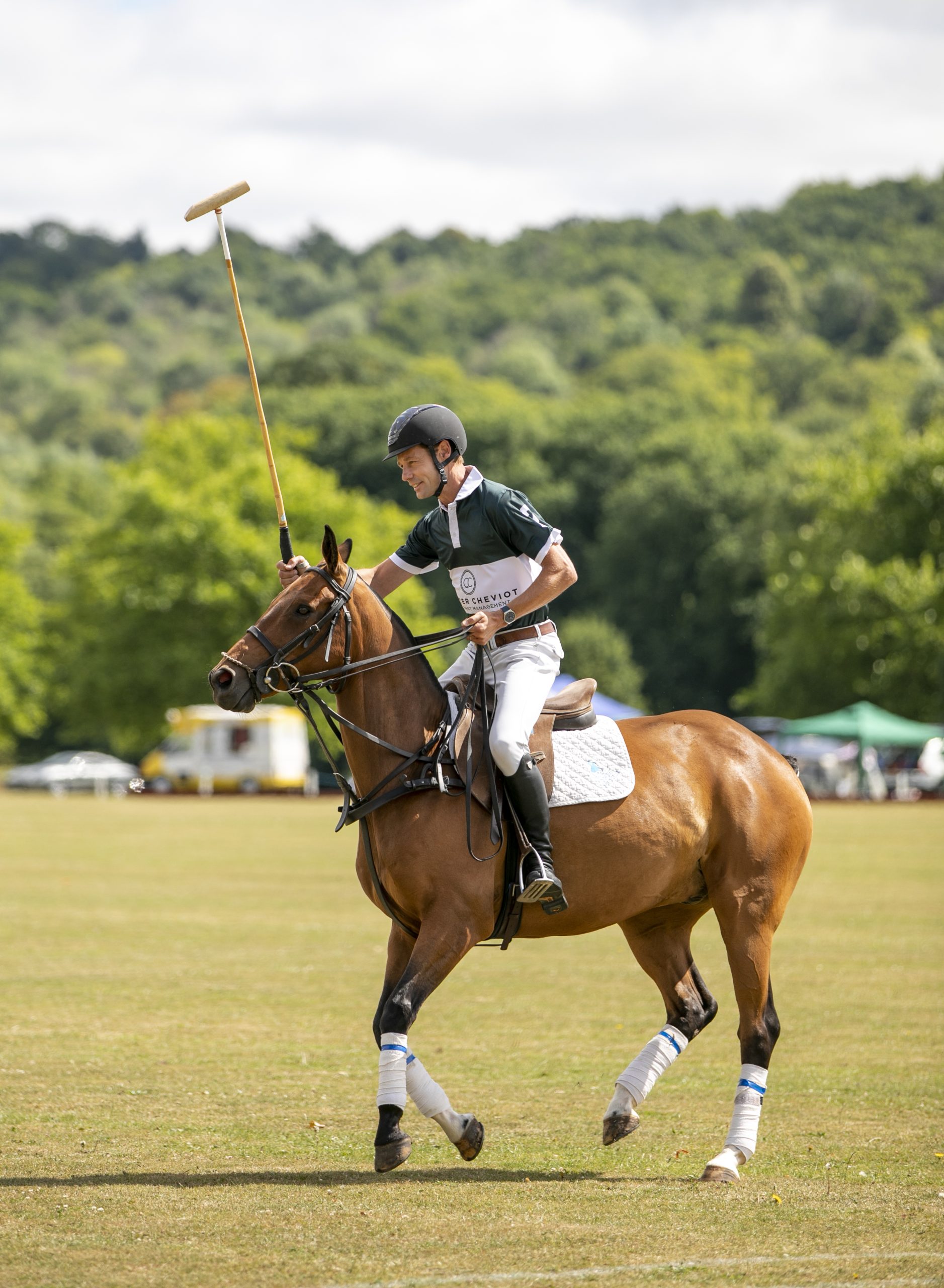 The event was entirely dependent on volunteers and in particular, our thanks to Daphne Smith, Carole Ann Michels, Chris Cann and Lt Col David Steevenson MBE who put in long hours on Friday ensuring our marquee was pristine and bedecked with beautiful flowers. Also joining us on Saturday 9th, were the 2FD raffle ticket sellers Werner Stroud, Trustee Jo Suddaby-Smith, Prof Paul Taylor and with his wife Karen Hitchcock and Dr Earl Merson. In the pony lines ready to receive no less than 19 ponies and 11 players and jockeys, Martin Giles and Chris Cann were hard at work before starting and judging the ‘Dash’.